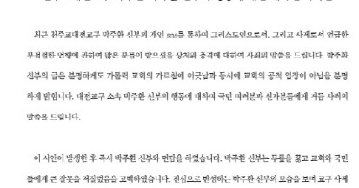박주환 미카엘 신부. 또 박 신부의 공적 미사와 고해성사 집전 등 성무집행을 정지했다. 김 교구장은 박 신부가 무릎을 꿇고 교회와 국민들께.
